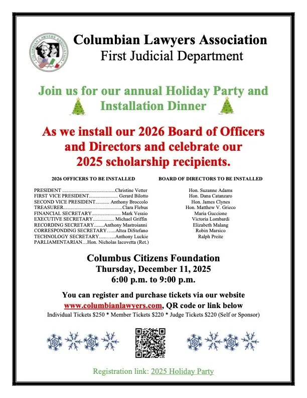Columbian Lawyers of the First Department Upcoming Events: December 11, 2025 Please Register Here for our Christmas Party